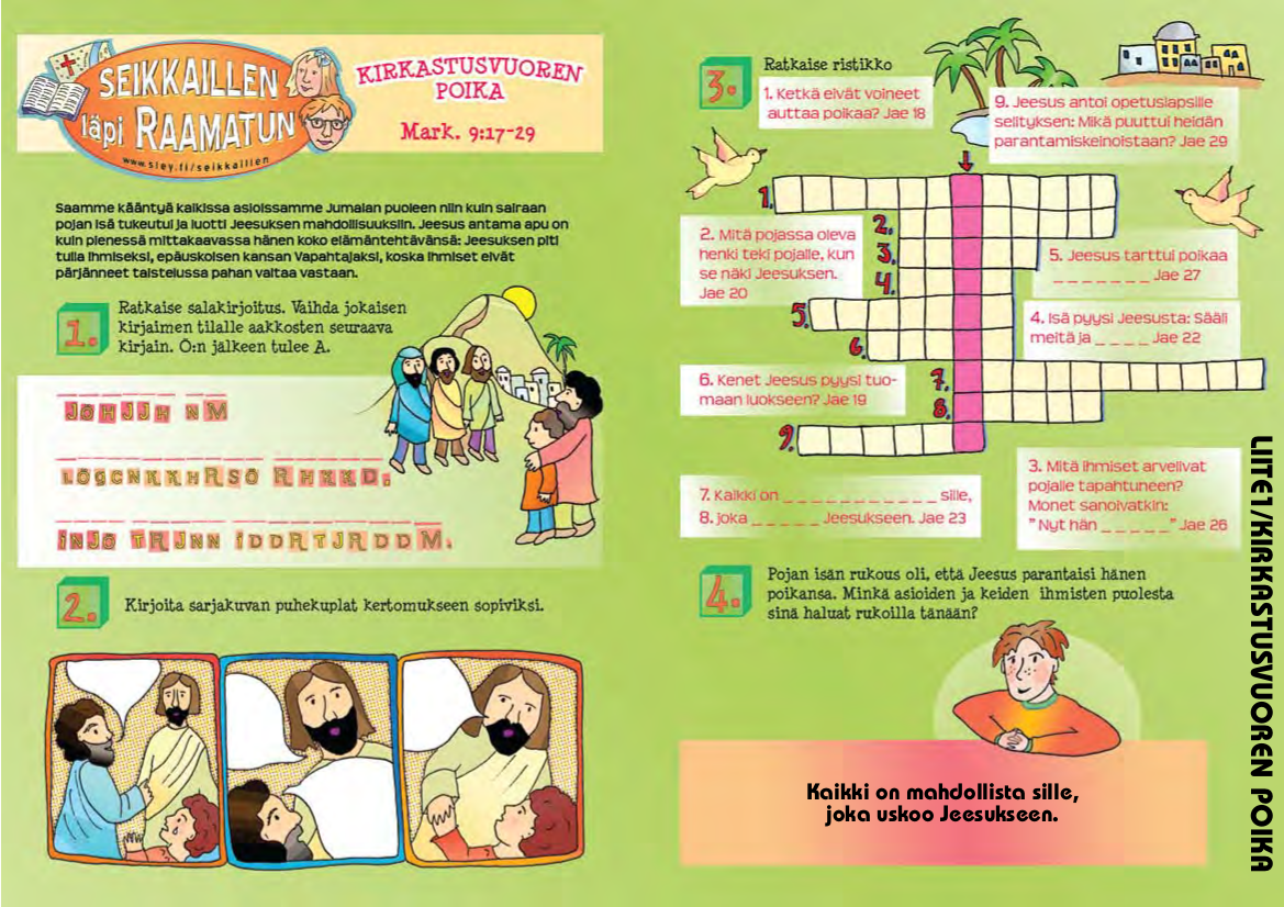 1. Mitä pojan isä tarkoitti sanoessaan: ”Minä uskon! Auta minua epäuskossani!”?
