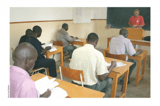 2. Keitä kuvassa on? (Suomalainen lähetystyöntekijä ja kenialaisia pappisseminaarin opiskelijoita.)
